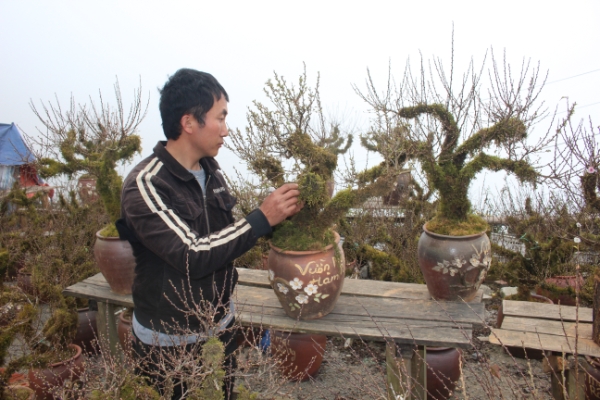 Năm nay, anh Giàng A Chày có gần 500 cây nhất chi mai và hơn 100 cây đào phục vụ thị trường Tết. Thân, cành cây đều được phủ kín rêu xanh. “Nhìn những nụ hoa chi chít nổi bật trên nền rêu xanh, cây đào, cây mai như khoác áo mới, đẹp hơn hẳn”, anh Chày chia sẻ; đồng thời cho biết tùy kích thước và dáng thế, nhất chi mai được bán với giá từ 500 nghìn đồng đến 2 triệu đồng mỗi cây.