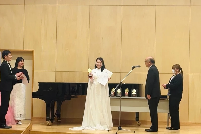 Trần Thị Vân Anh, nữ sinh Học viện Âm nhạc Quốc gia Việt Nam, xuất sắc giành giải đặc biệt tại Kyushu Music Competition 2026.